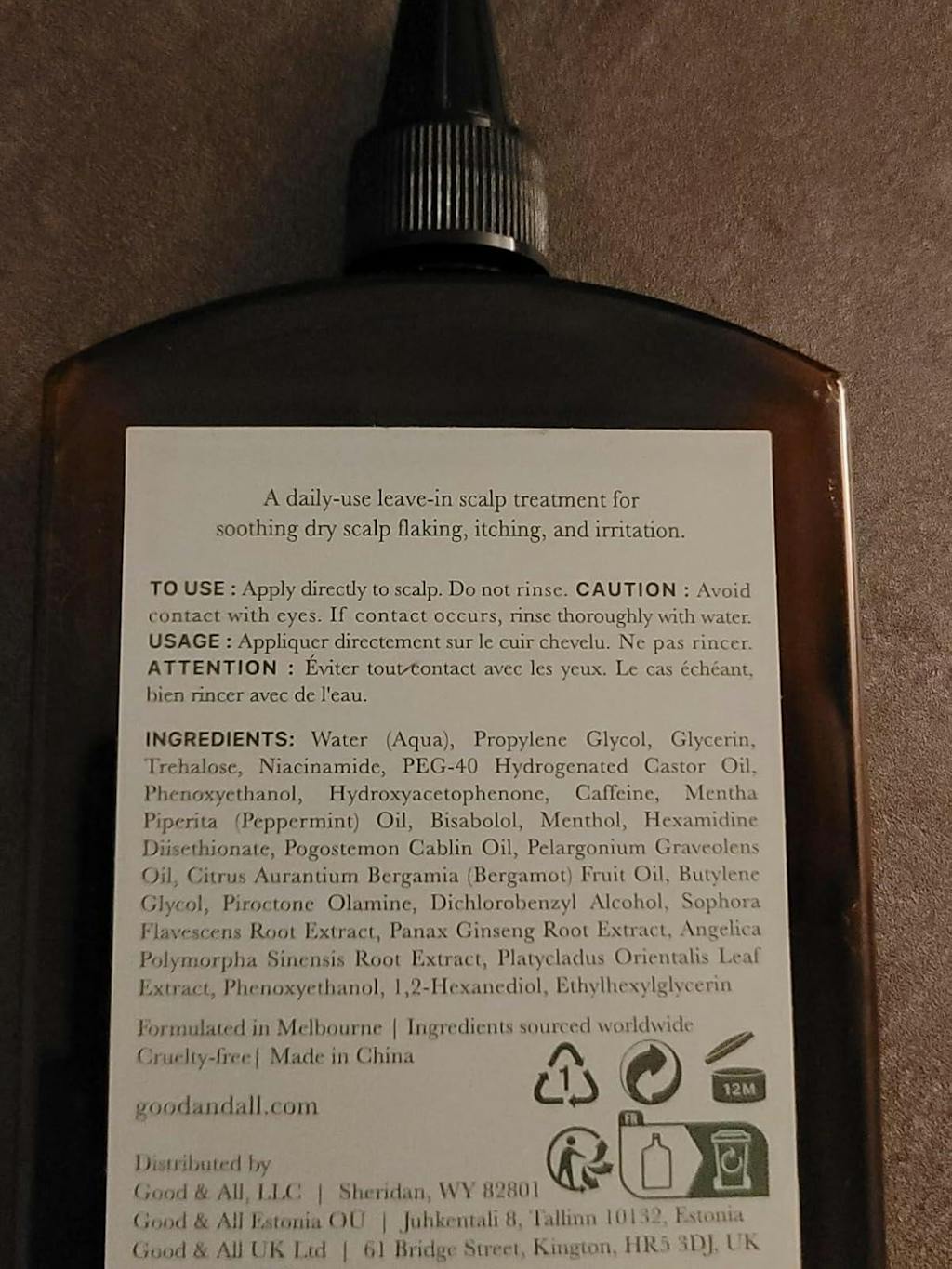 This scalp treatment from Good&All is very soothing to itchy areas on my head! There is a trick to applying so it may be difficult for some people who aren't certain with watery type applications. Shake the bottle really well to mix the ingredients together, part your hair in sections, and apply it gently and slowly to rows on your scalp. Do not squeeze the bottle or it will pour out too quickly so applying at an angle is best. After applying it to my head, I massaged my scalp and felt a tingliness. It was soothing and helped a lot of areas on my head that get gross in the summer so I'm very appreciative of how soothing it feels. Additionally, the formula is super lightweight so it didn't weigh my hair down or turn me into an oil slick. I think as long as you're very mindful of how you apply this to your head, it's a great product! If you're not willing to follow instructions, maybe look elsewhere. :)